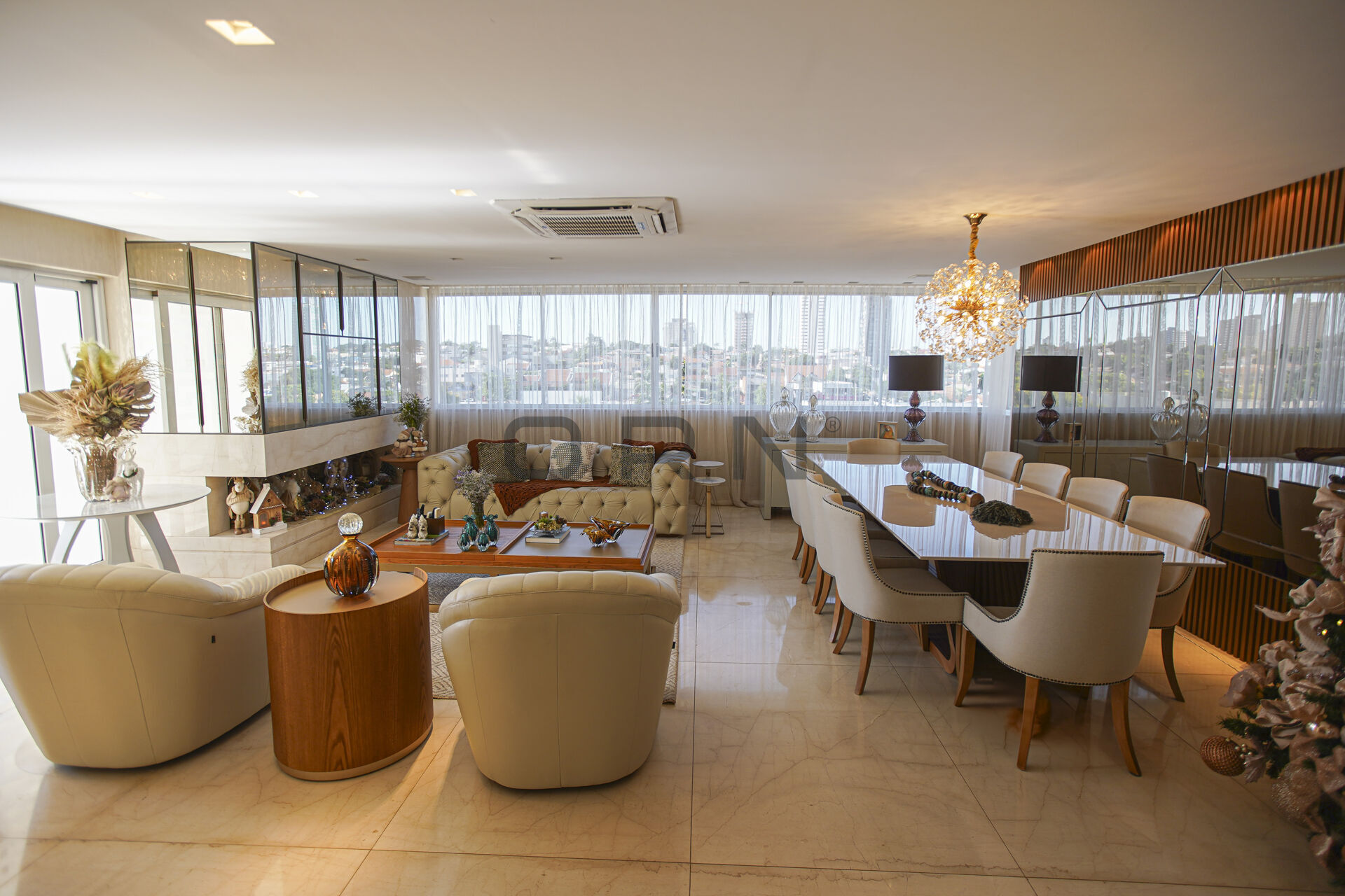 Este imóvel de alto padrão é uma obra-prima de design e sofisticação, com acabamentos e materiais selecionados para garantir o máximo em conforto e elegância. O piso da sala de estar, cozinha e banheiros das suítes é revestido em mármore Botticino, com cortes e lapidação especial, proporcionando uma paginação perfeita e sem sobras. As bancadas da cozinha e da suíte master são em Nanoglass, material de alta durabilidade e estética, enquanto as bancadas das outras suítes e da lavanderia são em Botticino, conferindo uma continuidade no design e requinte.