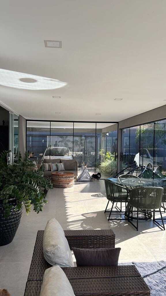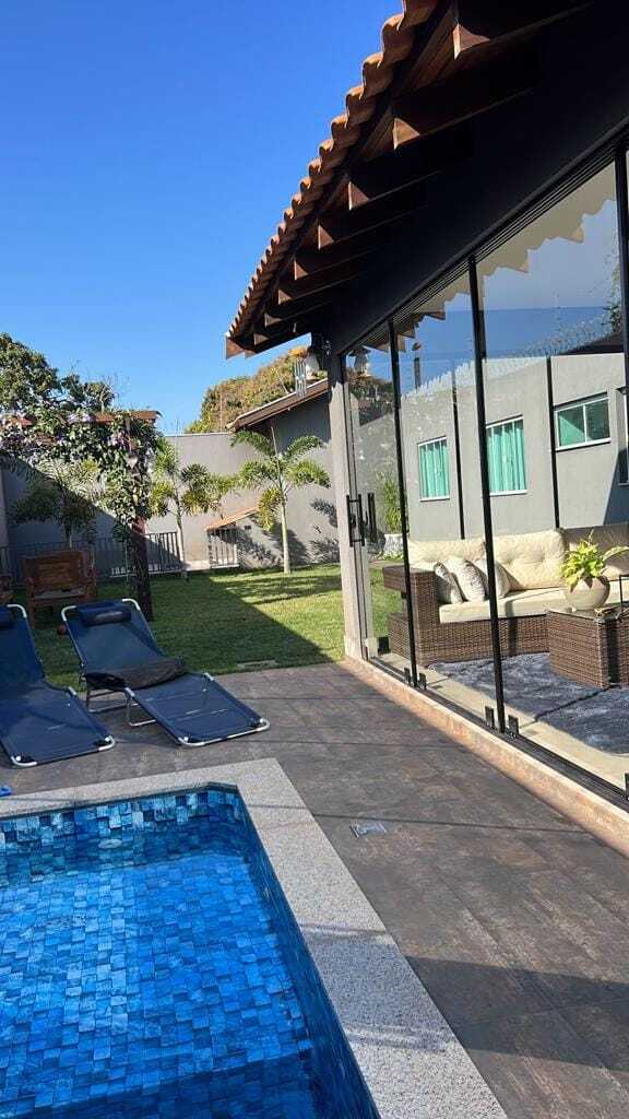 Garagem para 02 carros (coberta) - Sala de estar/jantar/cozinha integrados - 02 quartos - 01 banheiro social com nicho iluminado e pia em granito - 01 apartamento com armário, e banheiro com nicho iluminado e pia em granito - Cozinha com armários embutidos, planejados de primeira linha - Varanda ampla - Portas e janelas com vidros blindex esverdeados - Fundos possui canil com casa - Lavanderia fechada - Piscina com 18,4 m² e aquecida - Revestimento em Porcelanato - Ar-condicionado na sala e quarto do casal - Sistema de monitoramento e cerca elétrica com concertina - Projeto luminotécnico com lâmpadas LED.