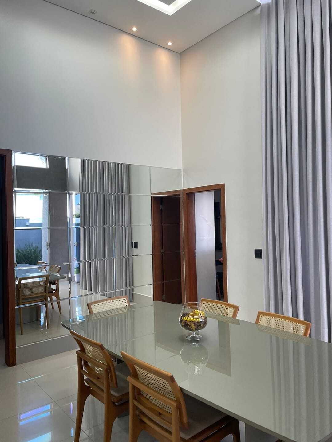 Casa possui uma suíte com closet, uma demi-suite com armário, quatro vagas de garagem, sendo duas cobertas, sala com pé direito alto, energia fotovoltaica, cozinha planejada, sala de tv, sala de jantar, espaço gourmet com churrasqueira e piscina aquecida.