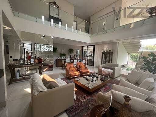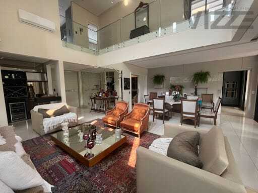 Pavimento térreo - Living com ampla sala de estar e jantar - Lavabo - Área gourmet ampla e fechada com blindex, com ar-condicionado sprint cassete e sistema de som - Home theater com sistema de som e ar-condicionado - Cozinha com móveis planejados - Área de serviço - Armários verticais de alvenaria - Banheiro de serviço - Banheiro de piscina - Piscina aquecida e com raia - Jardinagem completa e com irrigação.Pavimento superior - 03 suítes com armários planejados e ar-condicionado - 01 suite master com ar-condicionado - Home theater com sistema de som e ar-condicionado -01 escritório - 01 sala reservada - jardim de inverno.Diferenciais - Automação residencial por Alexia - Energia fotovoltaica - Tomada de alimentação para carro elétrico - Persianas automatizadas - fosso para instalação de elevador.