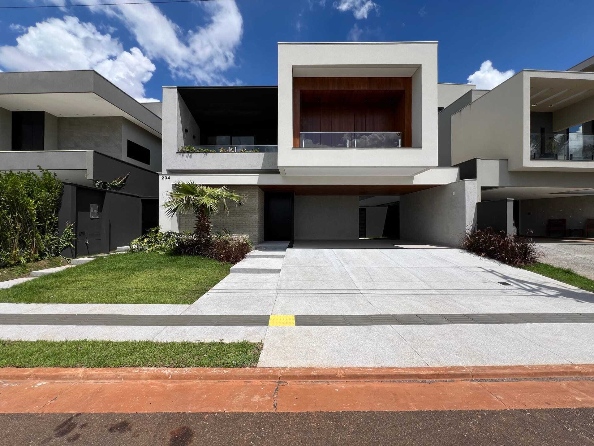 Lindo sobrado com: Garagem coberta para 02 carros – Hall de entrada – Sala de estar e Jantar – Apartamento reversível para escritório – Lavabo – Área de adega vertical – Cozinha – Cozinha Gourmet que pode ser integrada à cozinha e sala de jantar – lavanderia – despensa – depósito – armário de gás – armário vertical para máquinas – banheiro de piscina – piscina com prainha 25,00m².Piso superior – 01 suíte master com sacada e banheiro com hidromassagem, cubas e chuveiros duplos, 02 suítes com sacada, área de roupeiro, sacada. Diferenciais: Projeto sofisticado com fino acabamento - Espaçosa área de lazer – Paisagismo completo - Revestimento em porcelanato - Pintura semi-brilho no interior e textura no exterior - Churrasqueira moderna, reta e revestida - Projeto luminotécnico com lâmpadas LED - Caixa d´água com 2.000 litros - boiler de 600 litros - Metais Deca - Bancadas de granito e nanoglass.Preparo para instalação de ar-condicionado nos quartos e salas – Infraestrutura para CEF – TV - Infraestrutura para Instalação de energia fotovoltaica - Infraestrutura para aquecimento de piscina - Infraestrutura de espera para alimentação de carros elétricos.