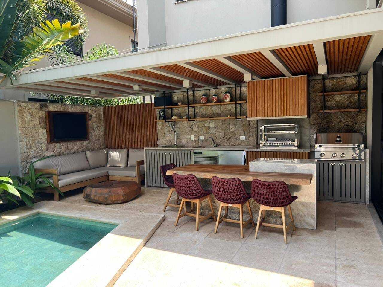 Linda casa de esquina, acabamento impecável, com 4 suítes, sendo a suíte master no piso térreo e mais 3 suítes no piso superior. Lazer completo. Pé direito duplo nas salas.Móveis planejados em todos os cômodos. Ar condicionado. Projeto luminotécnico.• Sala de estar• Sala de jantar• Sala de TV• 4 Suíte(s) com a/e• 1 Varanda• 3 Vaga(s) de garagem• Aquecedor solar• Área de serviço• Closet• Cozinha planejada• Despensa• Energia solar fotovoltaica• Hall de entrada• Hidromassagem• Home theater• Lavabo• Lavanderia• Mezanino• Pé direito duplo• Piscina• Piscina aquecida• WC de serviço