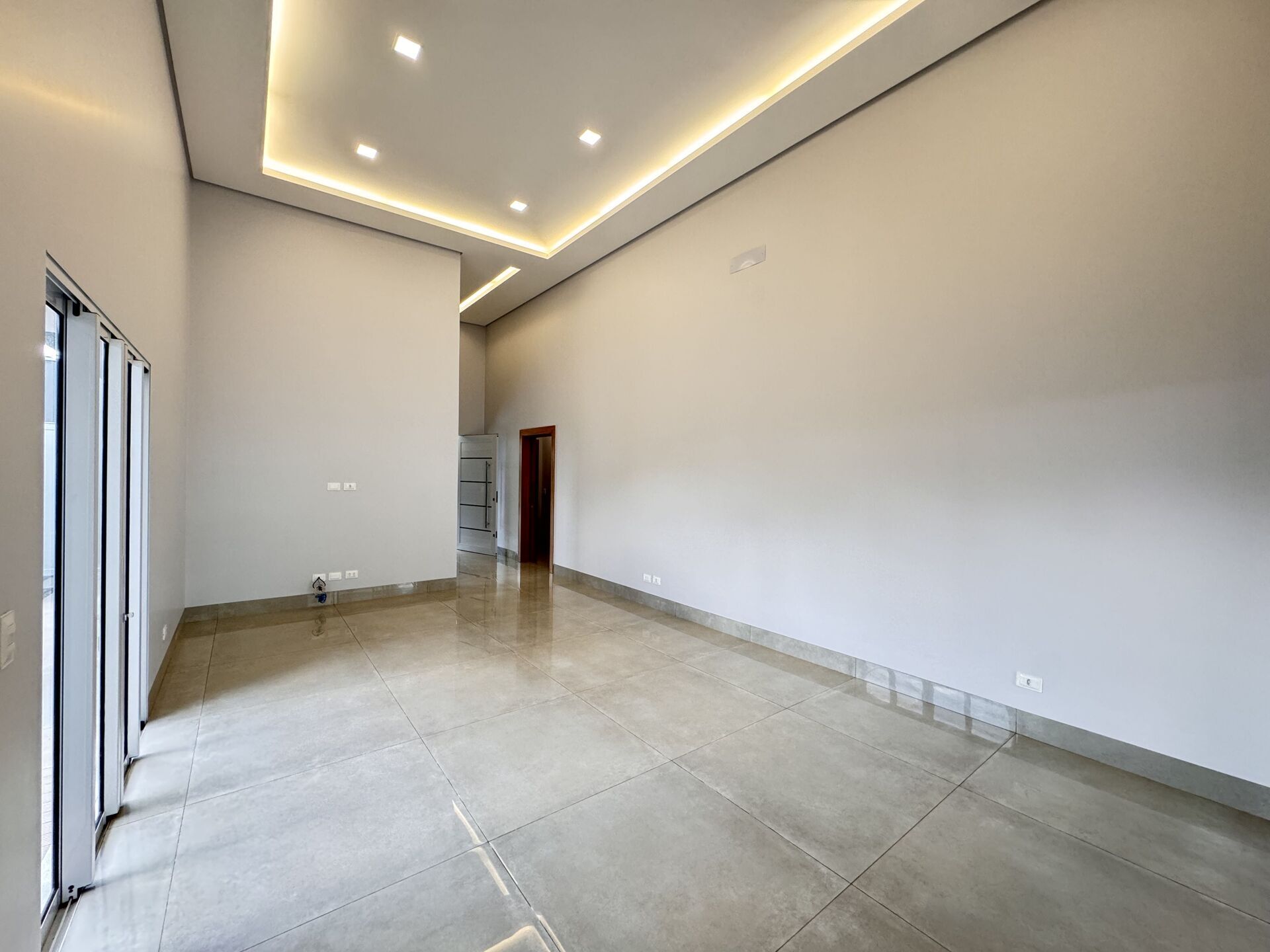 Sala de estar/jantar com pé direito duplo