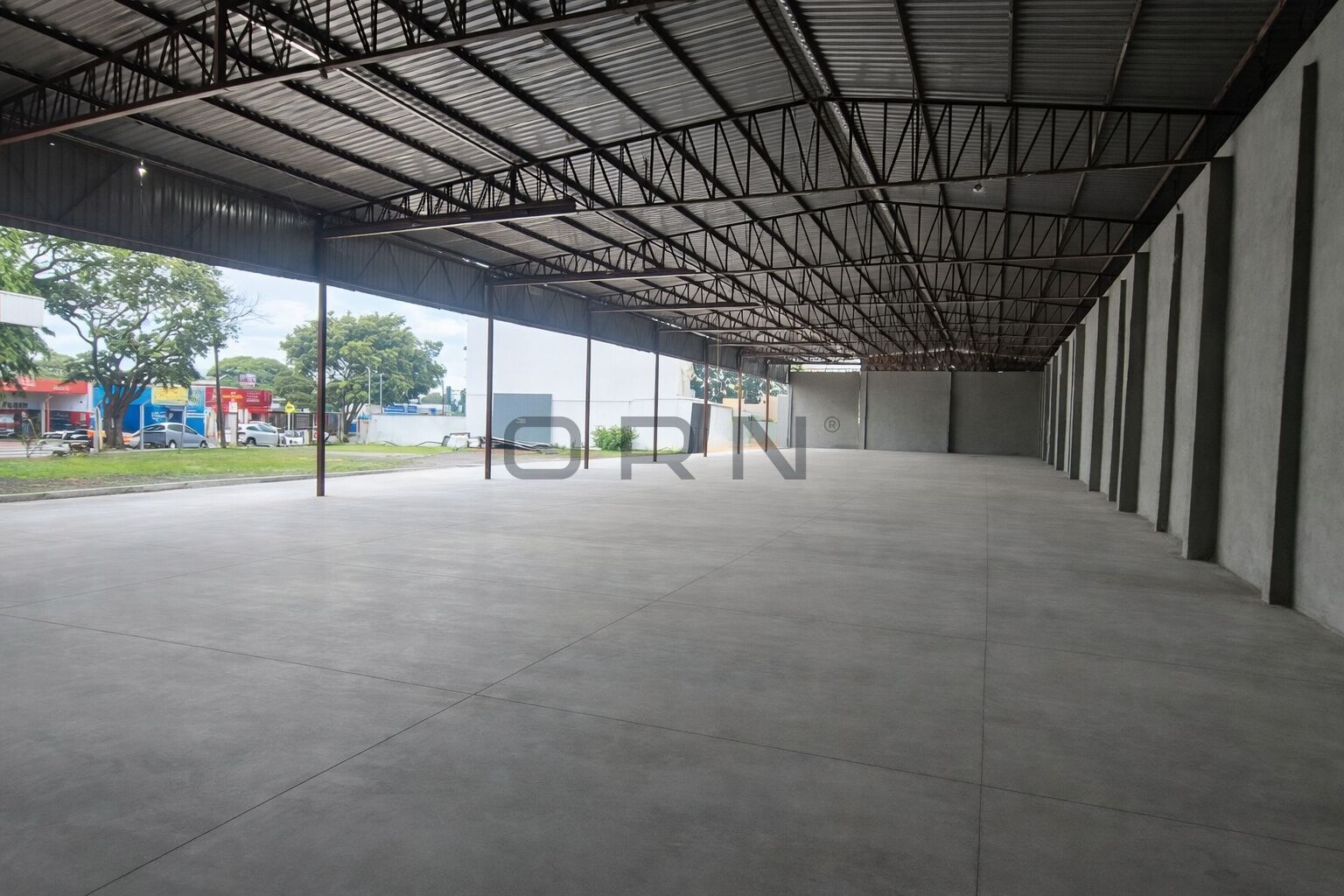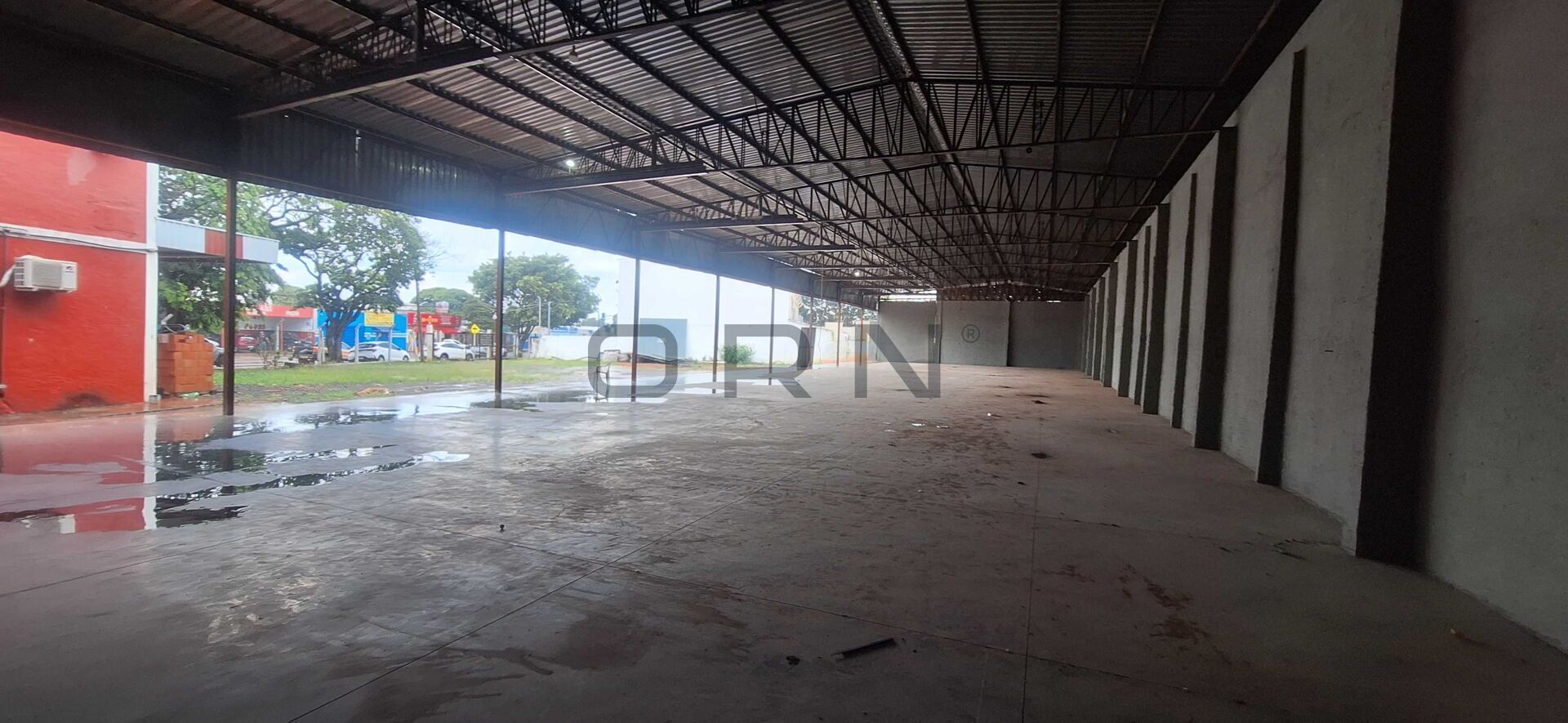 Galpão comercial grande, escritório amplo, pátio para manobras e estacionamento amplo.