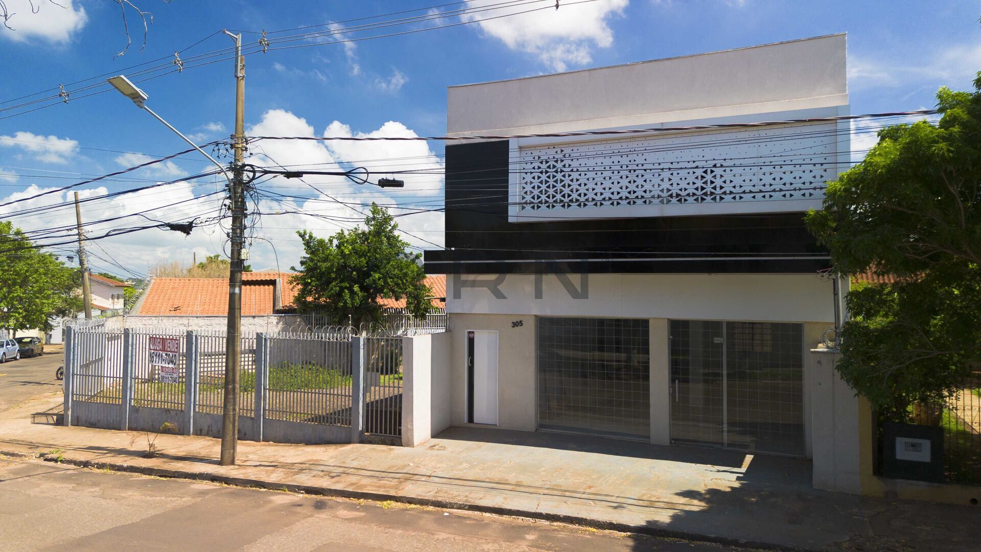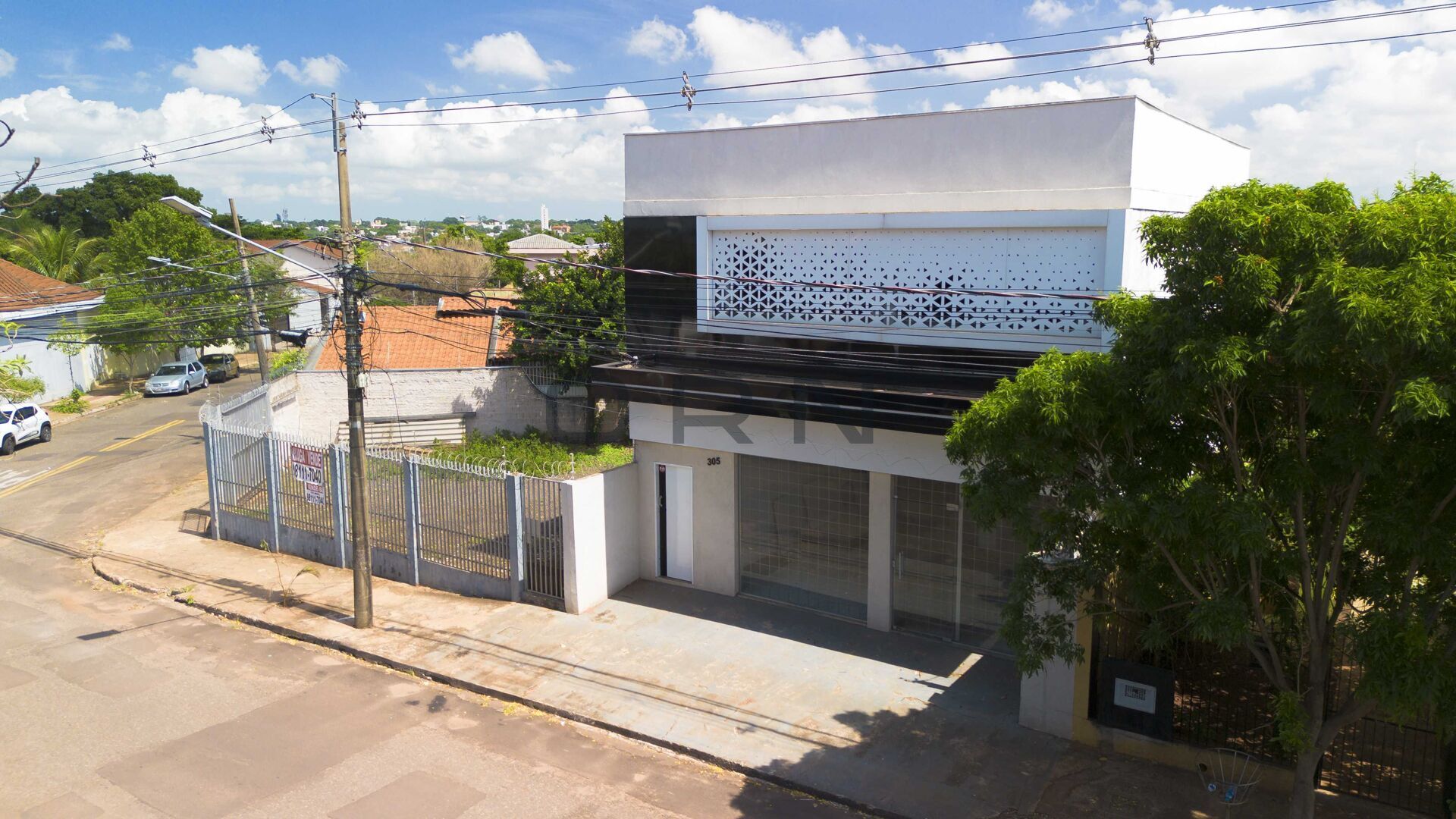 Prédio comercial de Esquina.Térreo: 1 sala grande, com copa e banheiro. 1 sala no fundo, Banheiro. Varanda coberta. Estacionamento para 6 carros. Cerca elétrica e concertina.