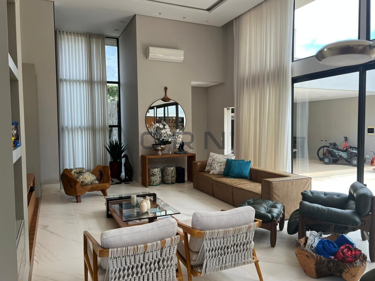 Linda casa de esquina, acabamento primoroso, com 4 suítes, sendo a suíte master no piso térreo e mais 3 suítes no piso superior. Lazer completo. Pé direito duplo nas salas. Móveis planejados em todos os cômodos. Projeto luminotécnico.
