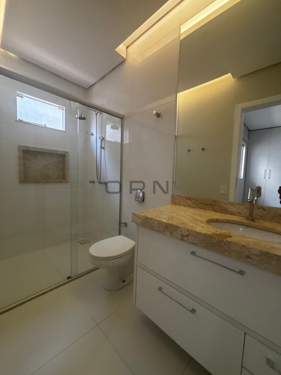 Piso superior: ante-sala, suíte máster com closet e escritório na sacada, suíte com sacada + 1 suíte. Imóvel rico em vidro temperado com cortinas blackout, pedras, armários e ar condicionados em todos os ambientes, banheiros com box em vidro temperado, pias e nichos das suítes e borda da banheira em mármore travertino, ilha e pias da cozinha, bancada, pias do lavabo e dos 2 banheiros sociais em granito, lindo paisagismo.